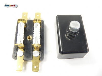 Pouzdro na 2 pojistky kulaté, připojení drátů konektorem, MZ ES, ETS, TS