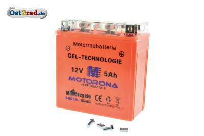 Gelová baterie, speciální provedení, rozměrově odpovídá originálním bateriím pro MZ ES125, ES150, ES175, ES250, ES250/2, ES175/2, ETS125, ETS150, ETS250 Troppy, TS125, TS150, TS250, TS250/1, ETZ125, ETZ150, ETZ250, ETZ251, Jawa 175, 250, 350 a další typy. Baterie je dodavaná plně nabitá, přípravená k použití. Baterie má dlouhou životnost, pracuje v jakékoli poloze.
