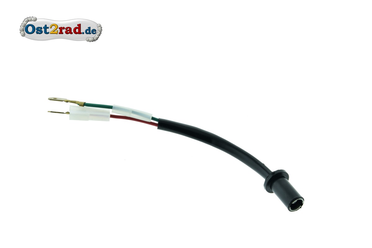 Objímka s kabelem osvětlení budíků tachometru a otáčkoměru pro moto MZ ETS 125, ETS 150, TS 125, TS 150, ES 125, ES 150, ES 175/0, ES 250/0, ES 175/1, ES 250/1, ES 175/2, ES 250/2, ES 300, ETZ 125, ETZ 150, ETZ 250, ETZ 251, ETZ 301, S50, S51, S70, S53, S83, SR50 a SR80.