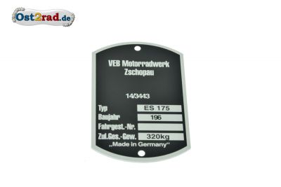 Typový štítek  MZ ES 175 rok výroby 1960 - 1969 hliník