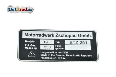 Typový štítek MZ ETZ 251 Motorradwerk Zschopau Gmbh