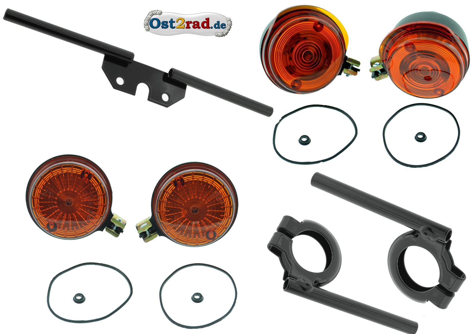 Blinkr kulatý barva černá, držák, Simson S50 S51 S70 s homologací