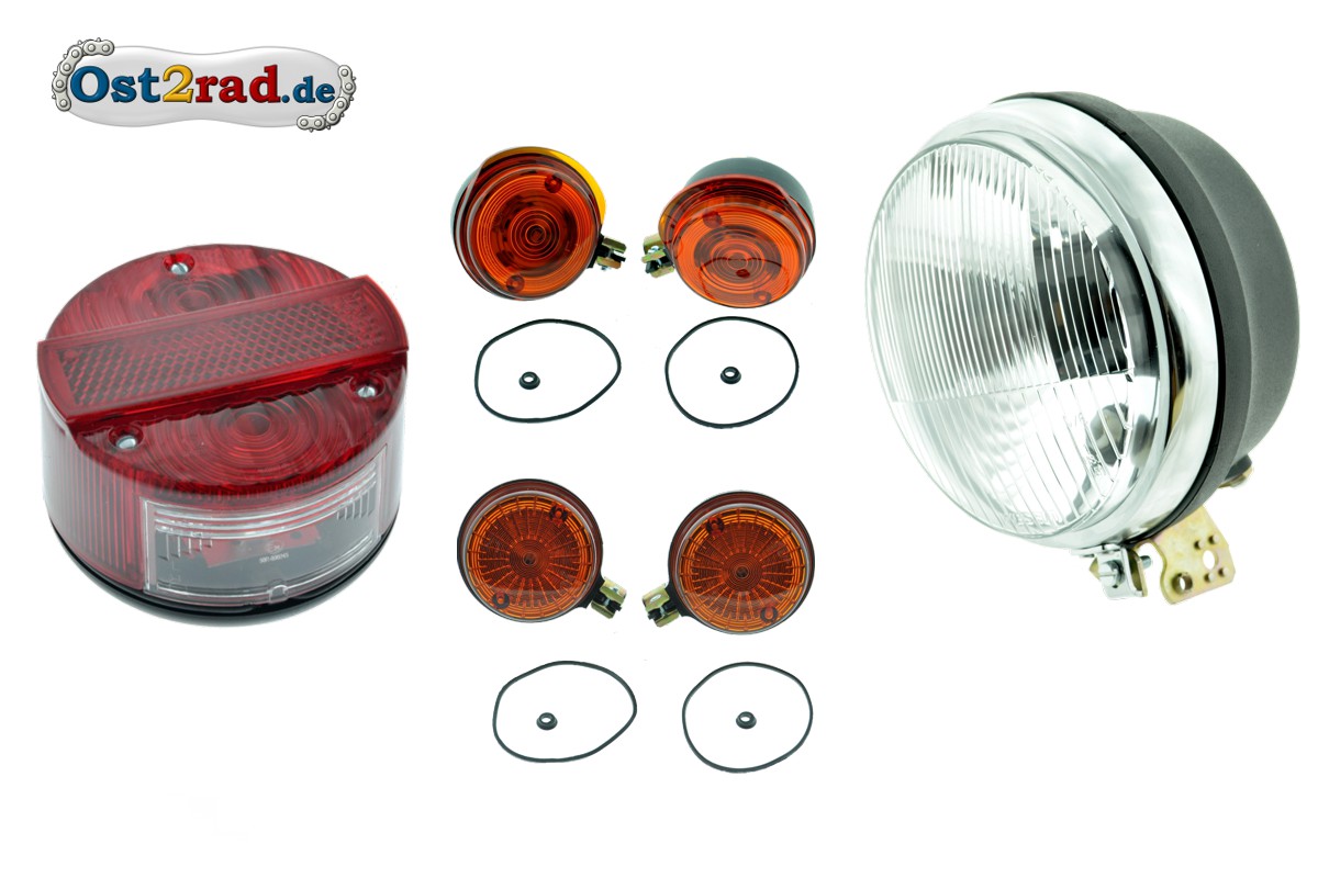 Kompletní sada osvětlení pro Simson S51, obsahuje zadní světlo , Bilux přední světlo a 4 ks blinkrů.