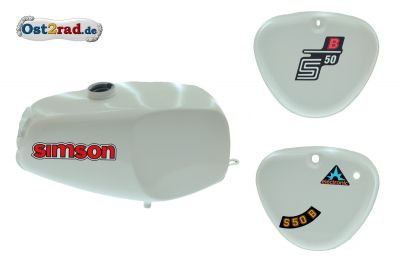 Nádrž kastlíky sada Simson S50 S51, bílá, 'buvol'