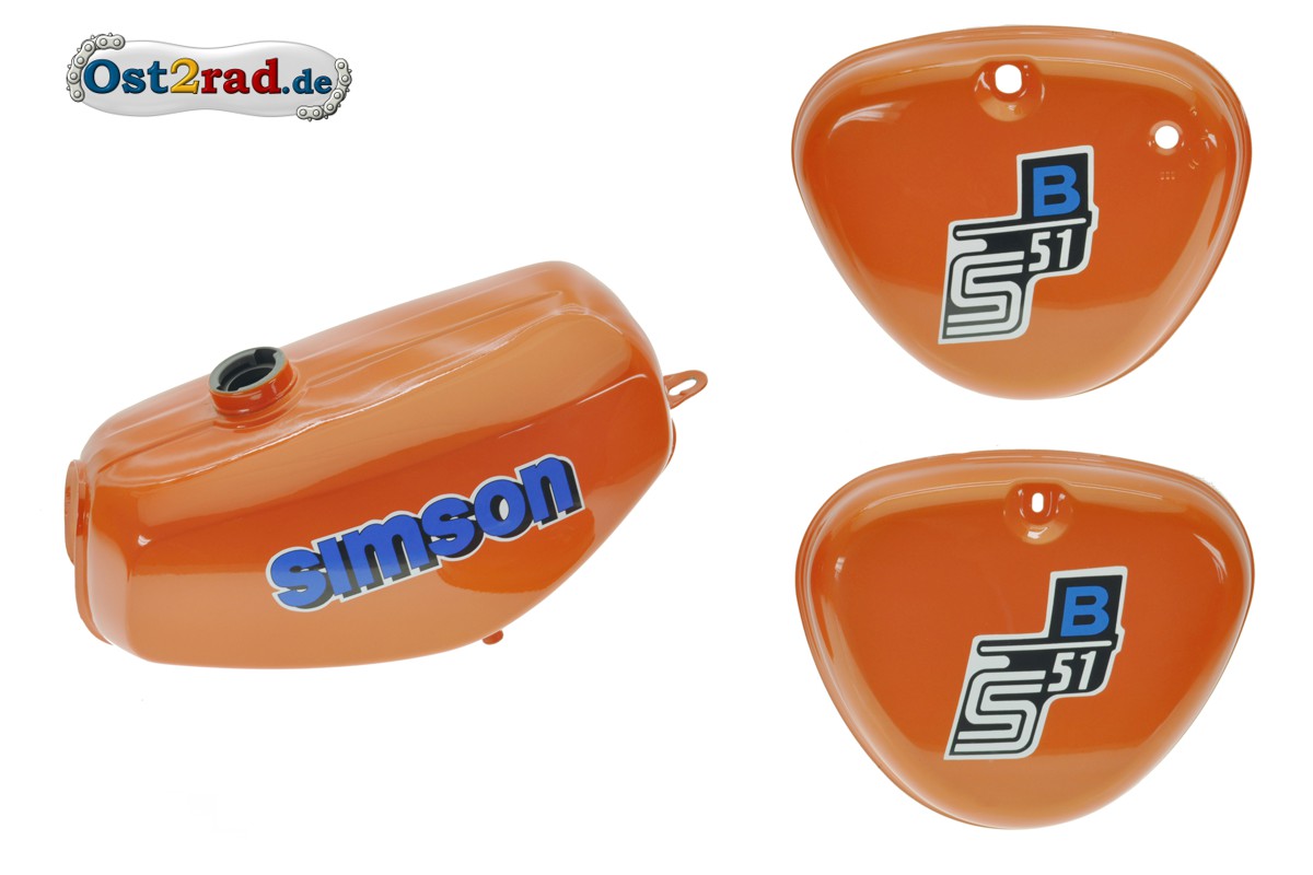 Nádrž kastlíky sada Simson S51 S70 , perleť oranžová, nálepka Simson
