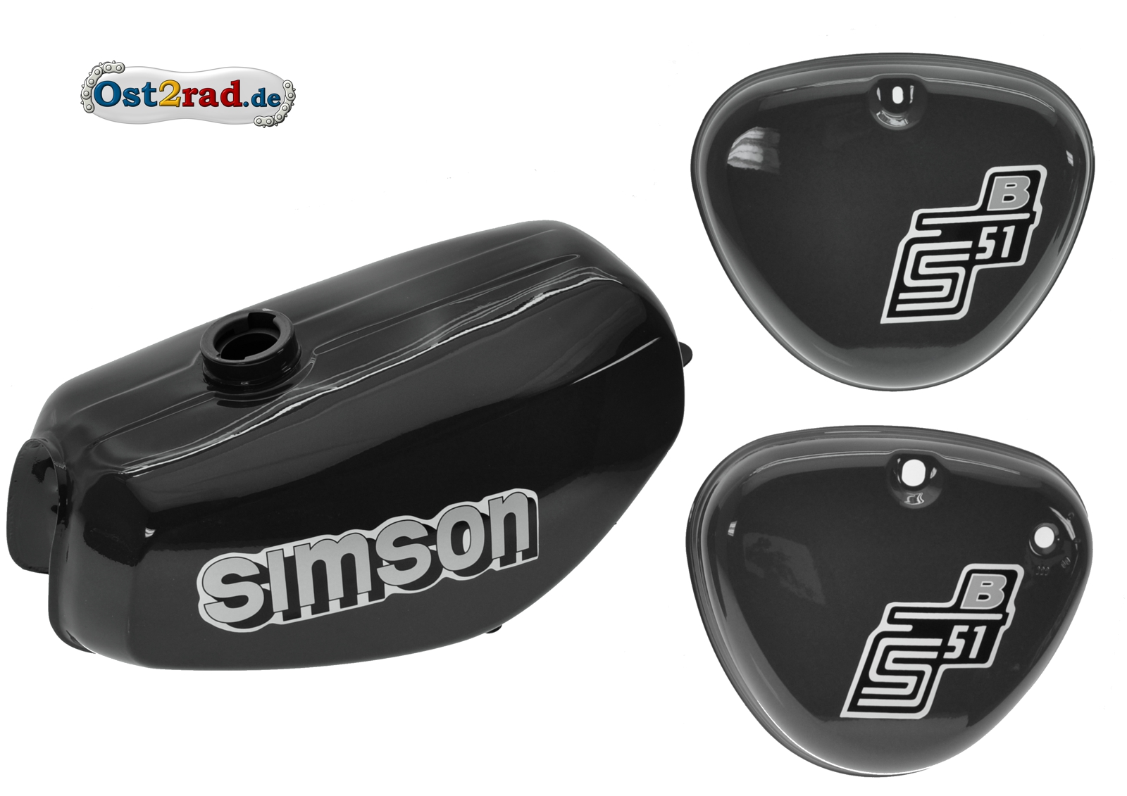 Nádrž kastlíky sada Simson S51 S70 , tmavě šedá, Dark Grey, nálepka Simson