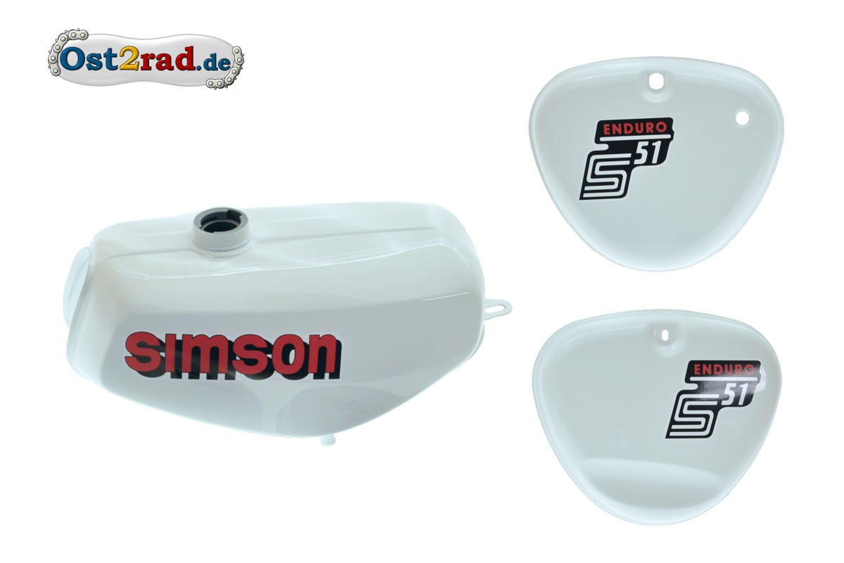 Nádrž kastlíky Simson S51E ENDURO bílá, samolepky