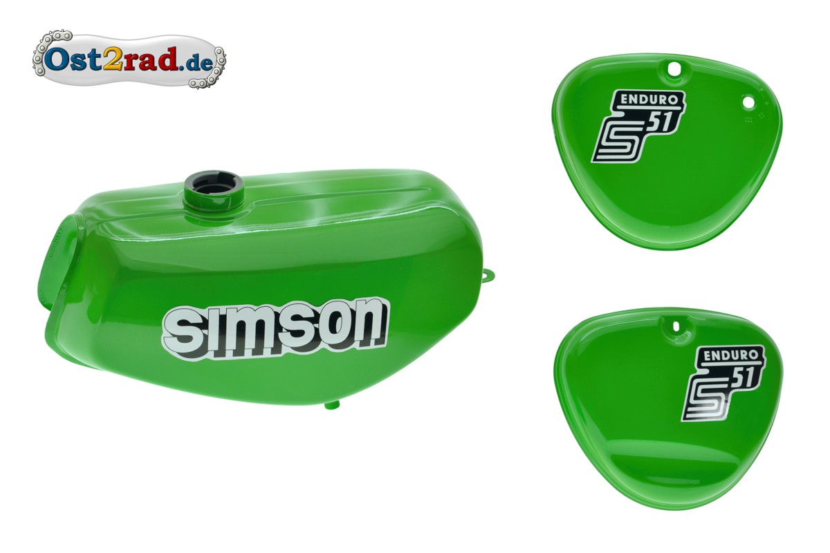 Nádrž kastlíky Simson S51E ENDURO světlá žluto zelená, samolepky
