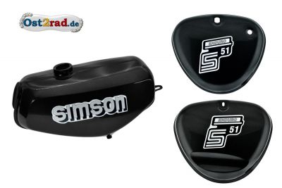 Exklusivní sada, nádrž banán s kastlíky na nářadí a baterii pro moto Simson S50, S51 Enduro.