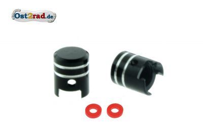 2x čepička ventilek tvar pístu Alu černá elox včetně O kroužku