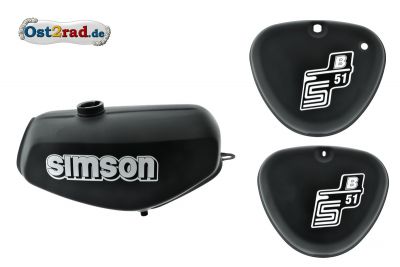 Nádrž banán s lakováním barvy černá mat s kastlíkem na baterii a nářadí pro motocykly Simson Typen S50, S51, S70 ENDURO. Vynikající kvalita.